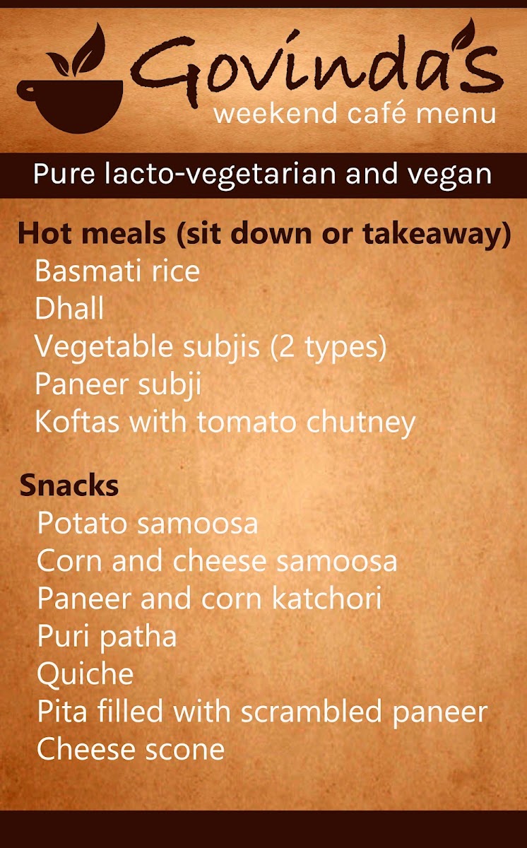 Govinda's Weekend Cafe Menu